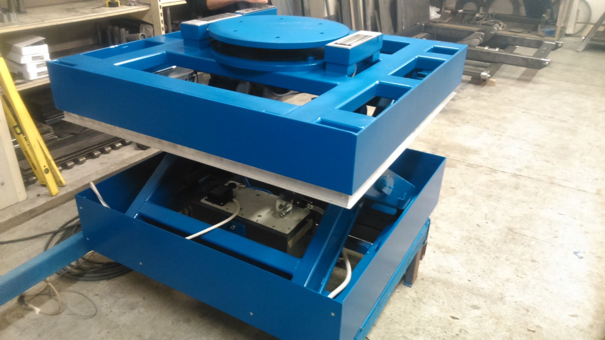 This machine is installed in a pit. It is used to rotate cable bobbins, since these products are heavy and hard to turn, they wanted a device they can move the bobbin onto, so it can be turned easily without too much manpower.